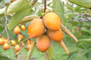 ■筆柿にかける想い 濃厚な甘みが癖になる筆柿ですが、一本の木で甘い柿と渋い柿が同時になる『不完全甘柿』で あるため、選別が難しく苦労を重ねた歴史があります。機械の導入、消費者ニーズへの対応、 後継者問題…様々な困難と戦ってきた歴史の上に、日本一の筆柿の地位を確立しました。 幸田町ホームページで幸田の人々の筆柿にかける 努力と情熱がまとめられた記事を読むことができます。 さらに当道の駅ではこの筆柿をより皆様においしく食べていただけるように、 新しい筆柿商品の開発に日々励んでいます。 お土産にピッタリのお菓子類からフルーティなワイン、この食事処でしか食べられない 創作筆柿メニューまで。当道の駅にお立ち寄りの際には、ぜひ豊富なバリエーションの筆柿テイストをご賞味ください。 |